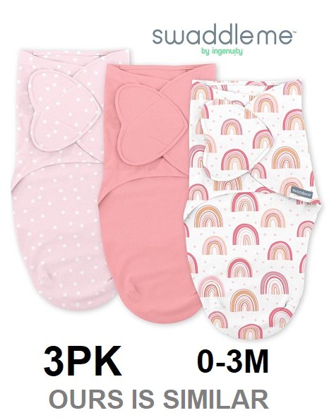 3pk swaddleme by ingenuity monogram collection swaddle - 0-3 months - pink