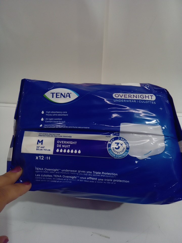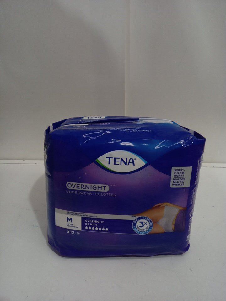 12PK WOMENS' TENA DISPOSABLE OVERNIGHT ABSORBENT UNDERWEAR WITH LIE-DOWN PROTECTION - MEDIUM (34"-44") - WHITE