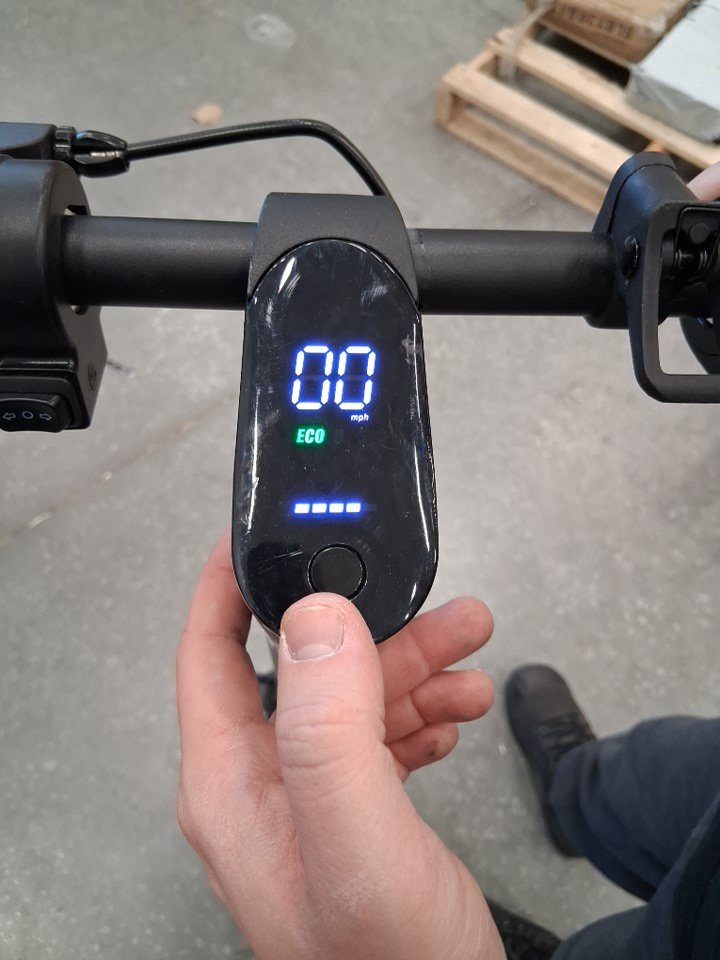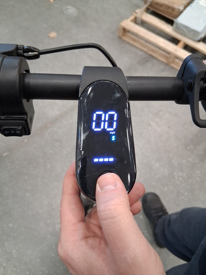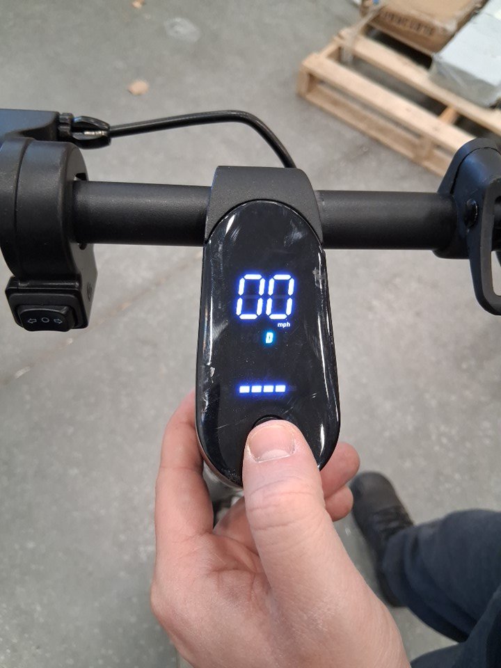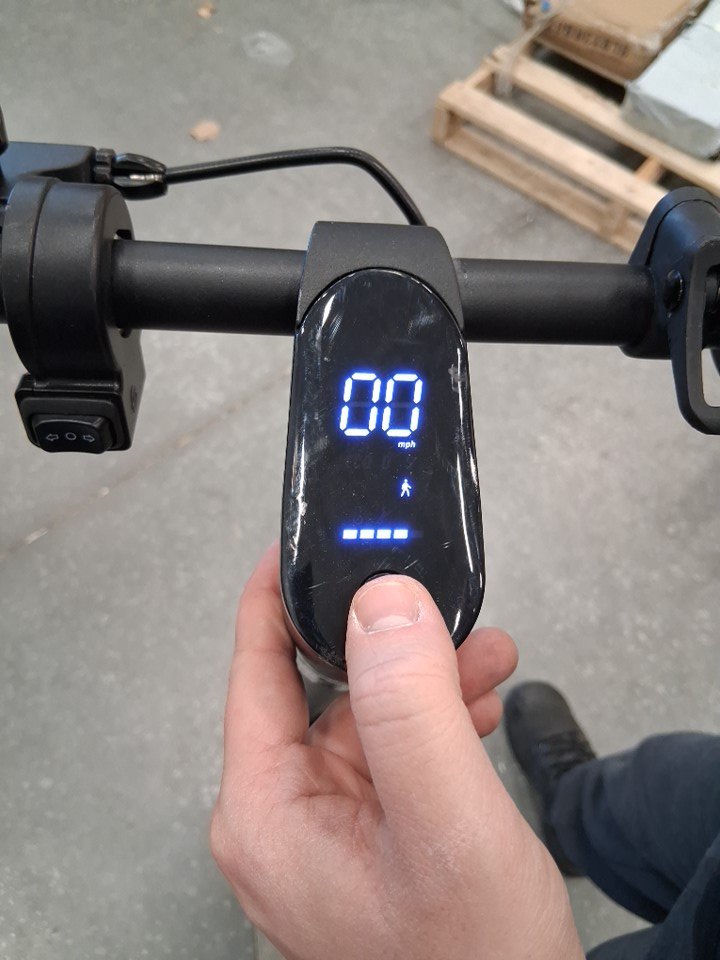 NO SCREWS TO HOLD HANDLEBARS ON AND NO BREAK OR HEADLIGHTS. DIRT OF PREVIOUS USE. TESTED FOR POWER.