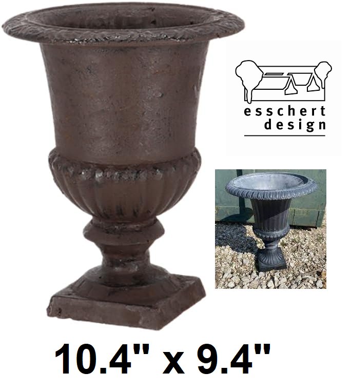 esschert designs cast iron french urn planter - 10.4" x 9.4" - brown (model: xh63-ar)
