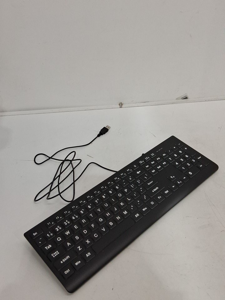 SABLUTE Wired Large Print Backlit Keyboard with Quiet Low-Profile Keys - Black (Model: LD-135)