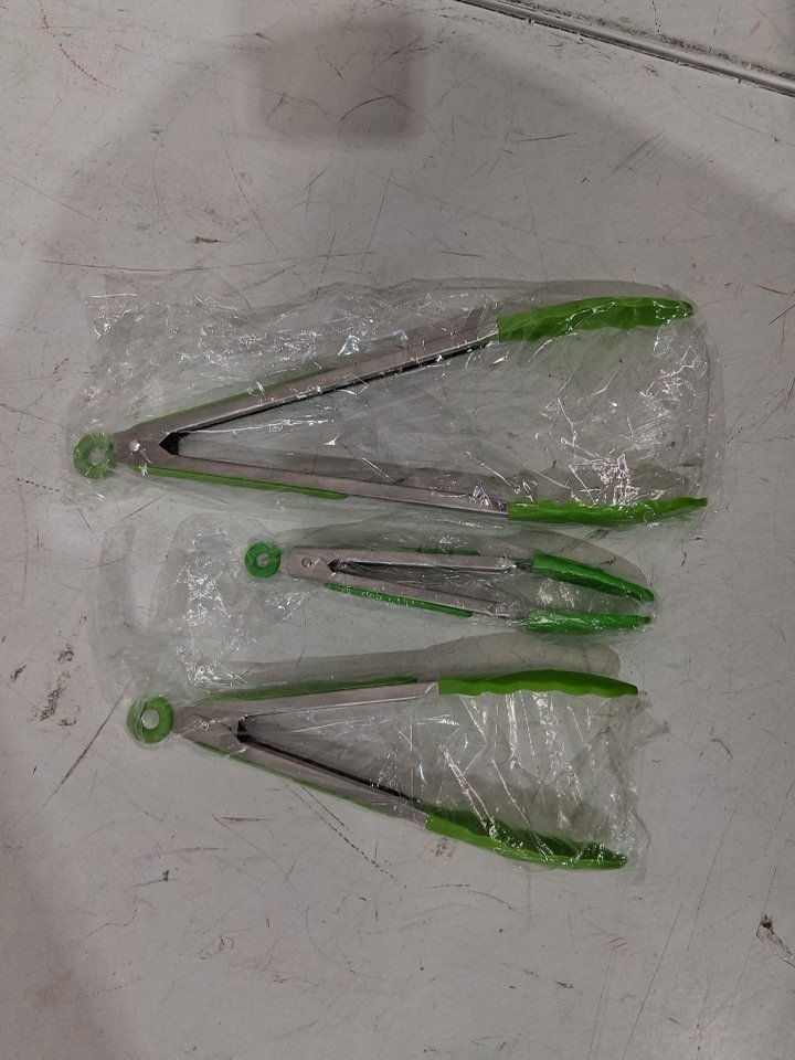 3pk Premium Silicone Kitchen Tongs with Stainless Steel Handles - 7" / 8" / 12" - green