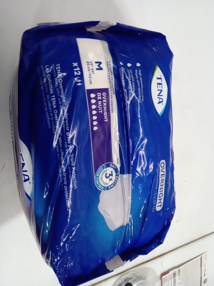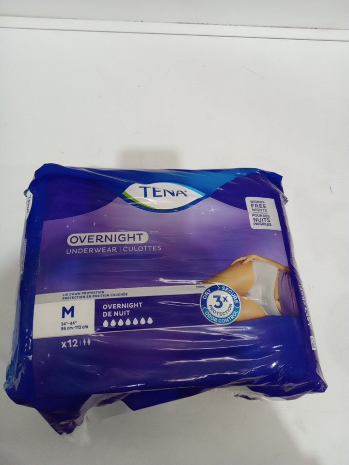 12PK WOMENS' TENA DISPOSABLE OVERNIGHT ABSORBENT UNDERWEAR WITH LIE-DOWN PROTECTION - MEDIUM (34"-44") - WHITE