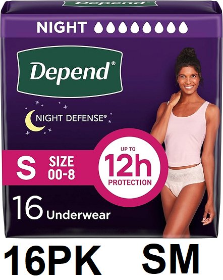 16pk women's depend Night Defense Incontinence Underwear - small - pink