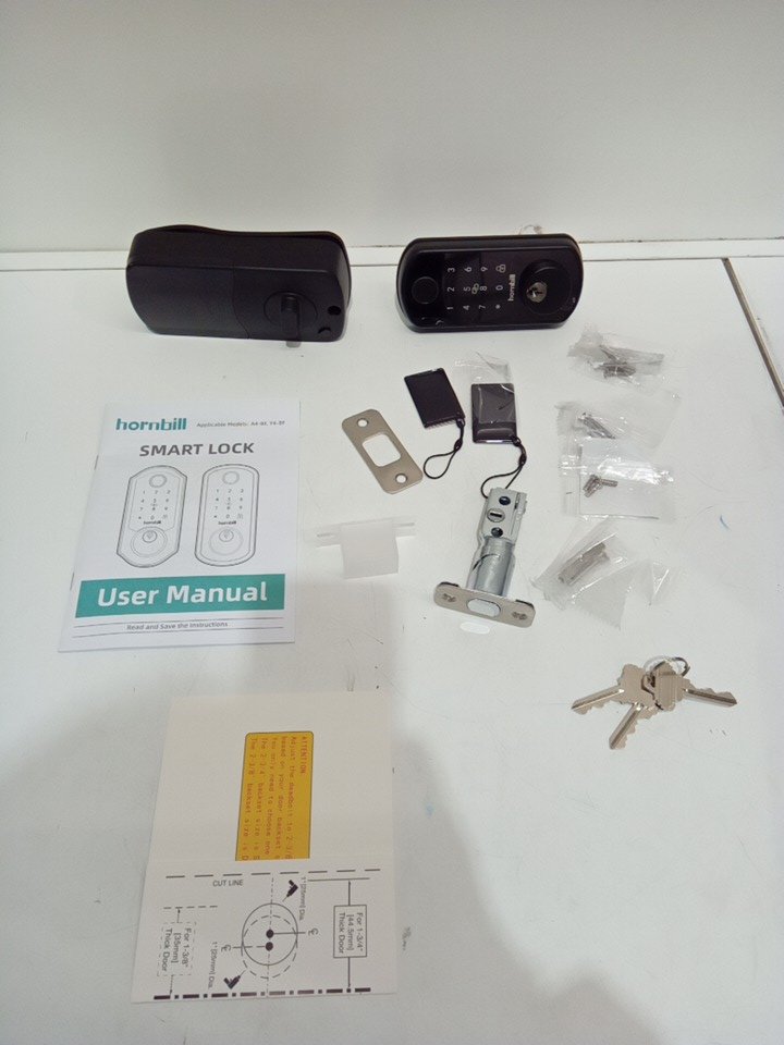 HORNBILL SMART KEYLESS fingerprint FRONT DOOR DEADBOLT SYSTEM WITH APP CONTROL & wireless key fobs - BLACK (MODEL: Y4-BWF-H)