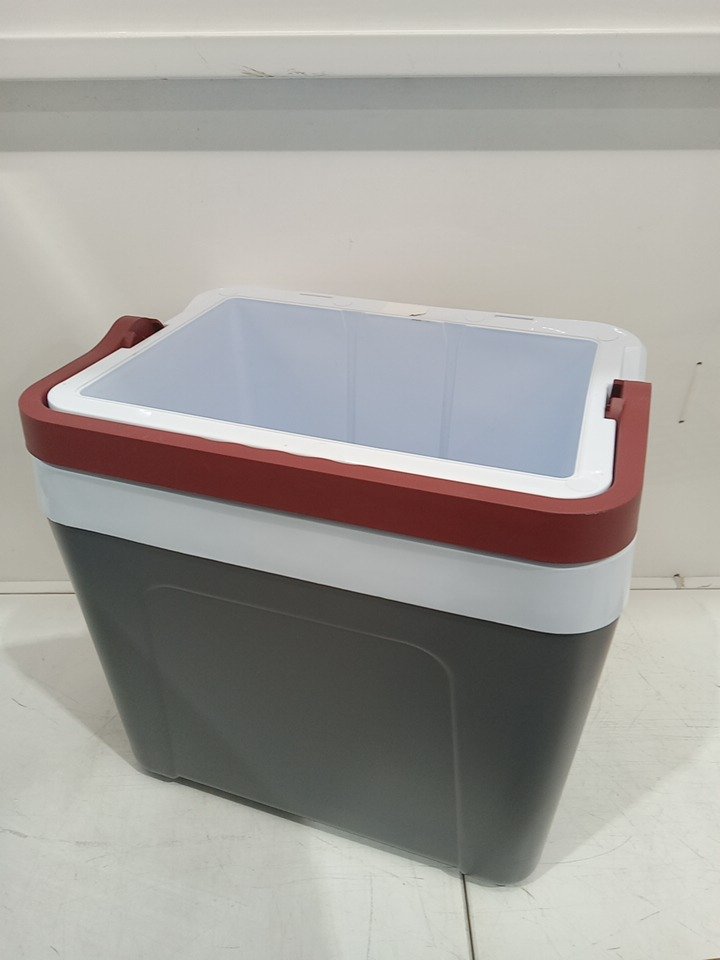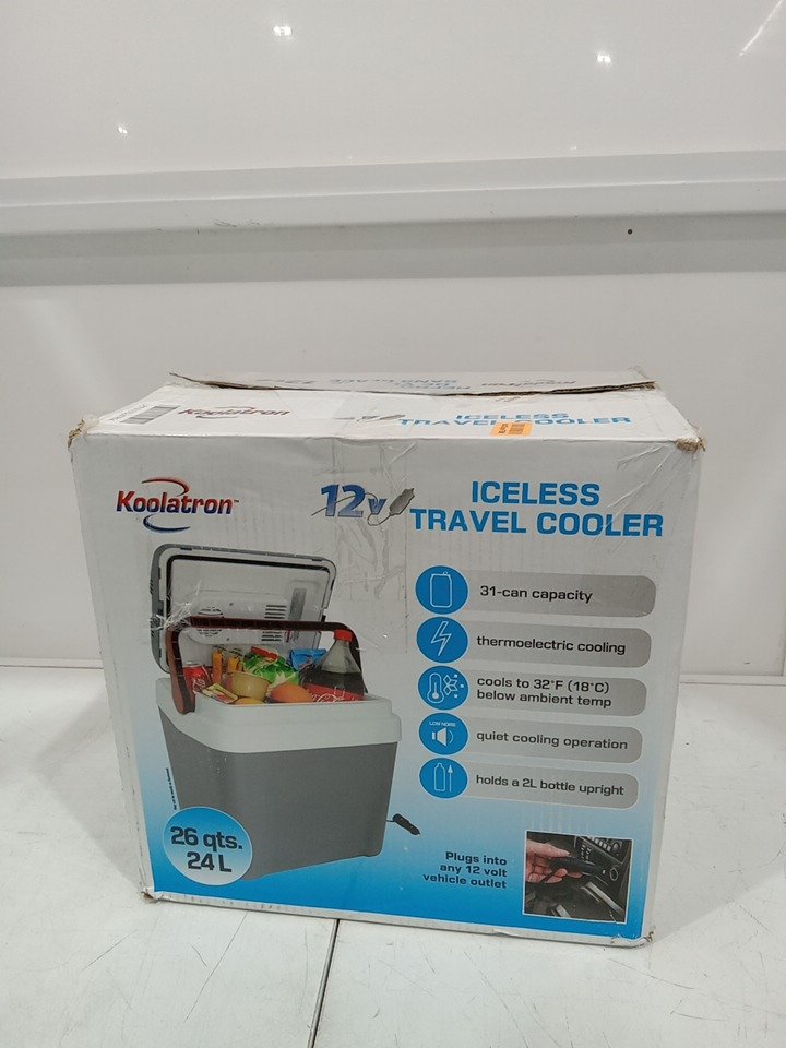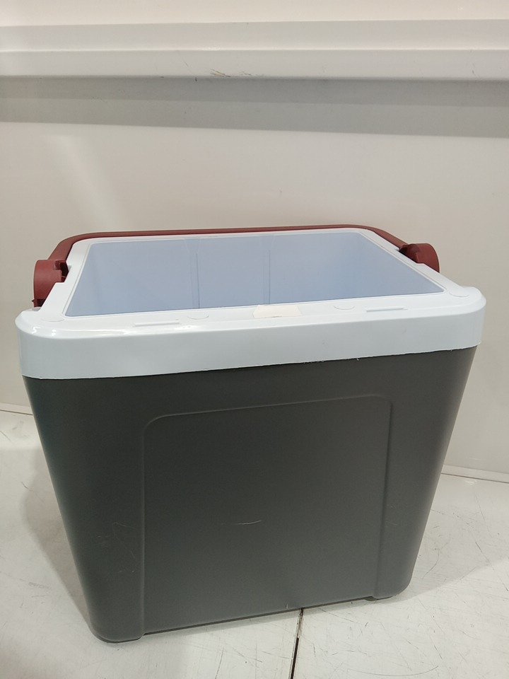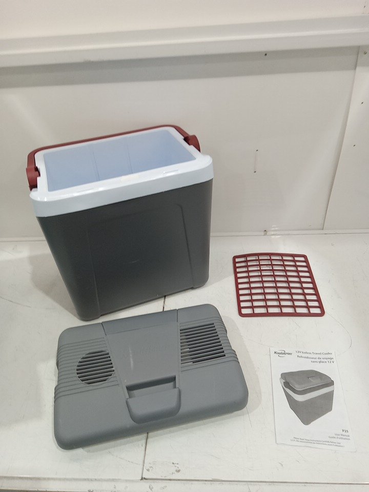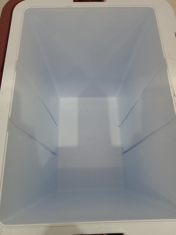 **NO POWER** Please note that the motor does not function when connected to a power source. There are scratch marks on the sides and top, and minor water and dirt residue inside the cooler from previous use. (Please see photos)