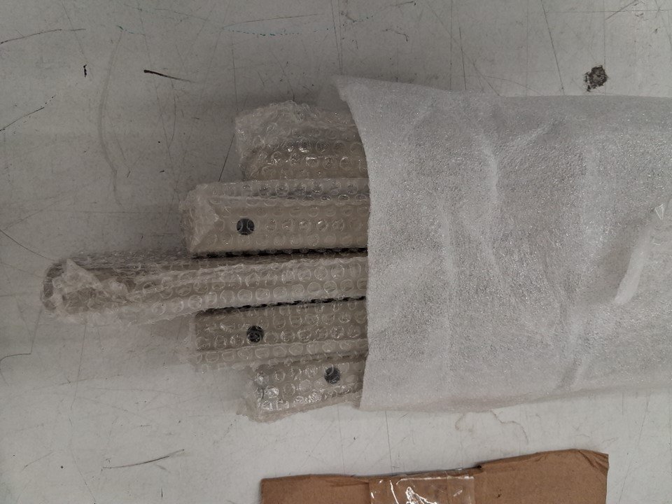Please see photos: - There is a small tear on the fabric - You might need additional generic hardware to install