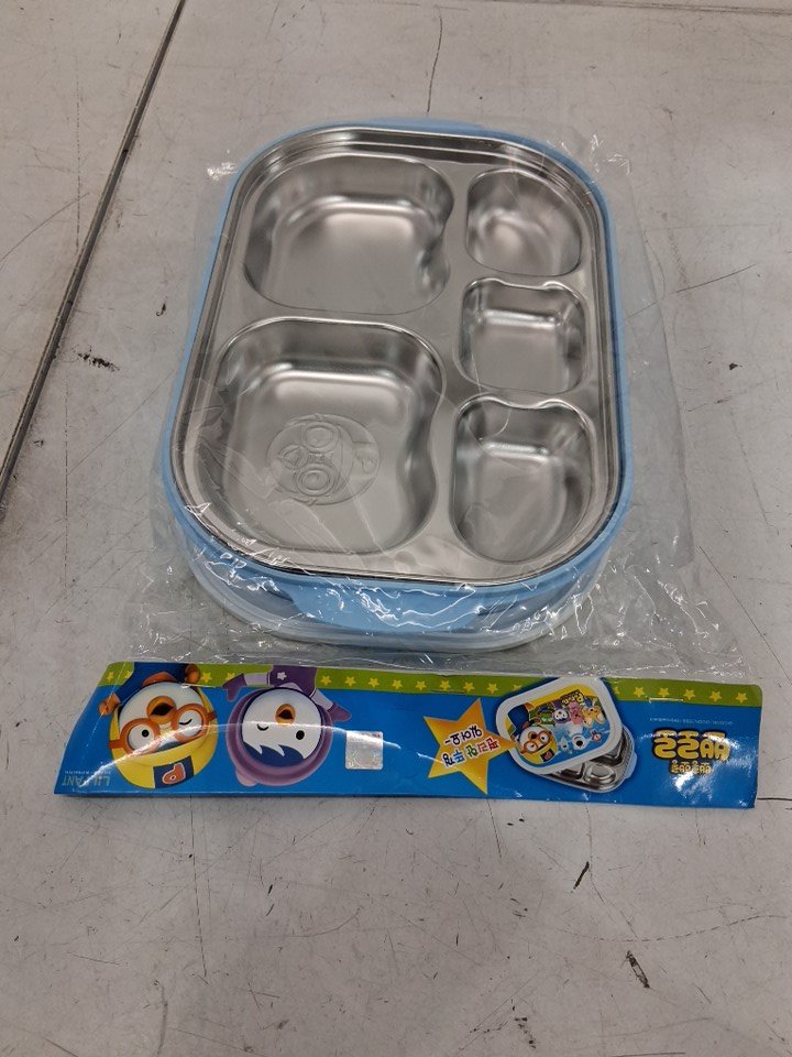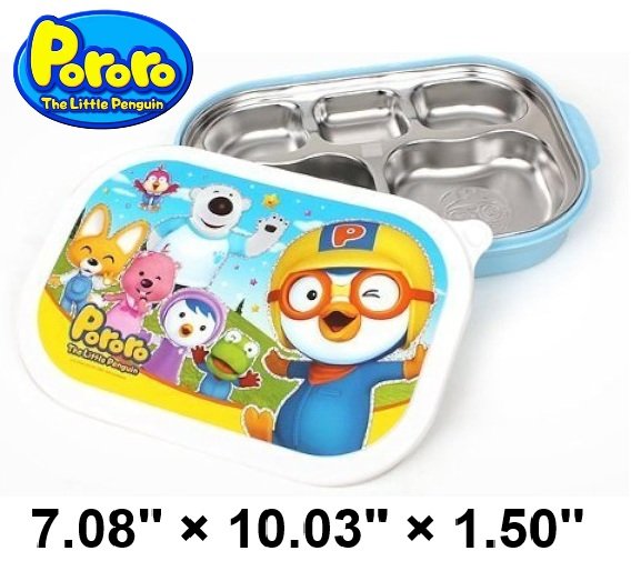 Pororo Portable Stainless Steel Divided Food Platter Tray with Lid-7.08" × 10.03" × 1.50" -blue/assorted colours