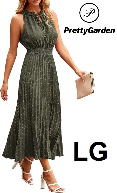 Women's Prettygarden sleeveless V-Neck swiss dot Ruffle Midi summer Dress - LARGE - army Green