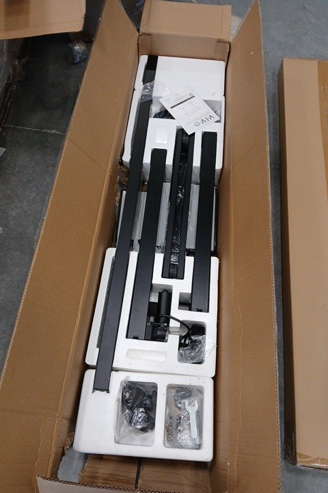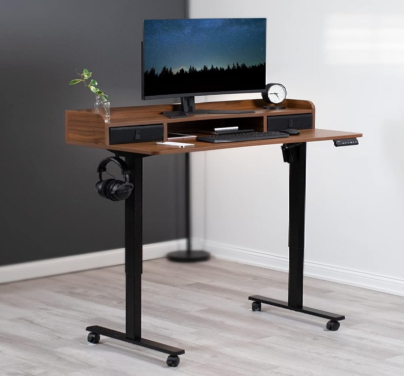 VIVO Electric 2-Tier Height Adjustable Mobile Table with Storage Drawers - 60" x 24" x 31"-50" - black/vintage brown (model: desk-e-y60sn)