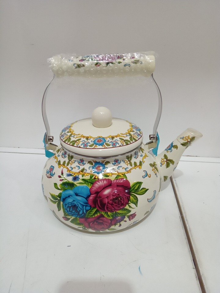 Large Porcelain Enameled Teakettle/teapot - 2.5L capacity - floral