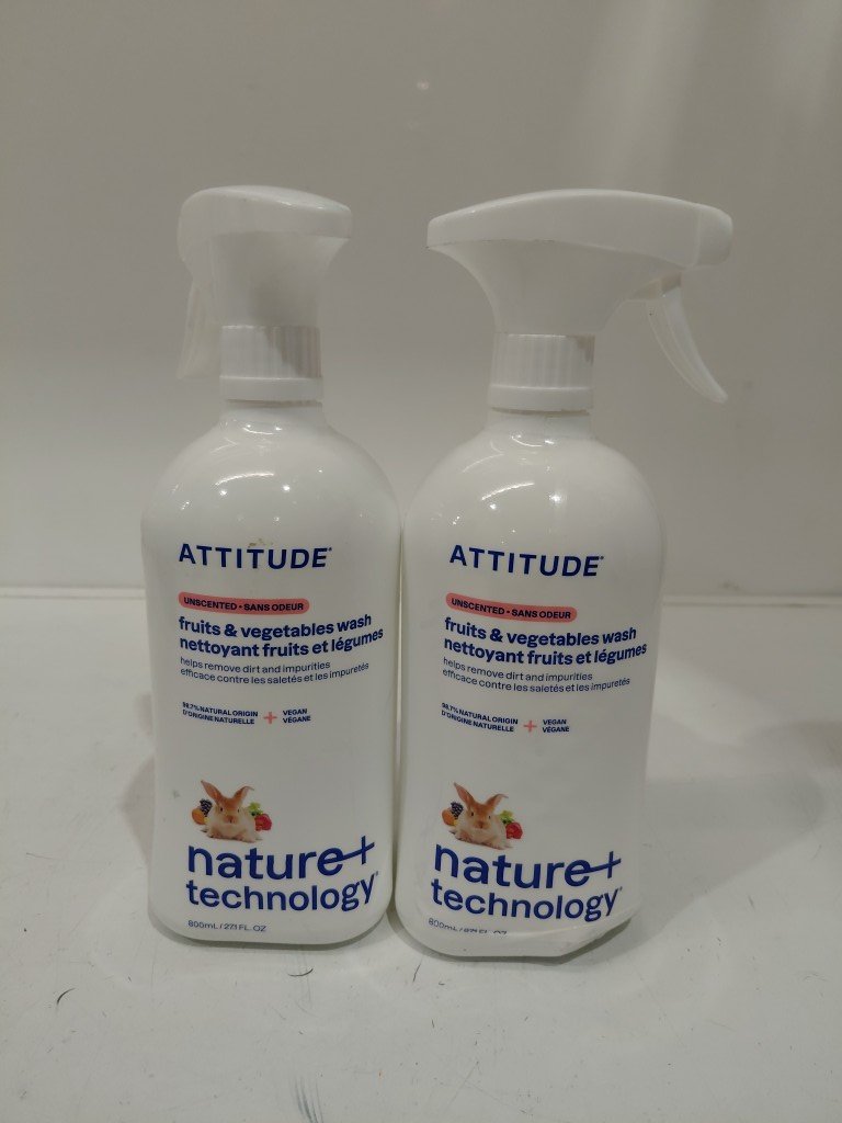 2 ATTITUDE HYPOALLERGENIC FRUIT & VEGETABLE WASH SPRAY - 800ML/EACH