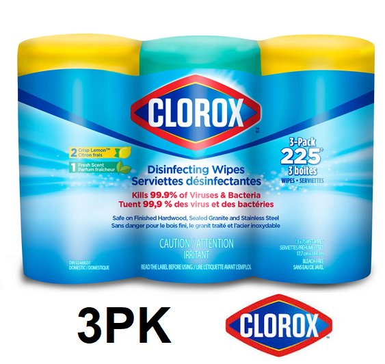 3pk clorox Disinfecting Wipes - 225 wipes total- crisp lemon + fresh scent