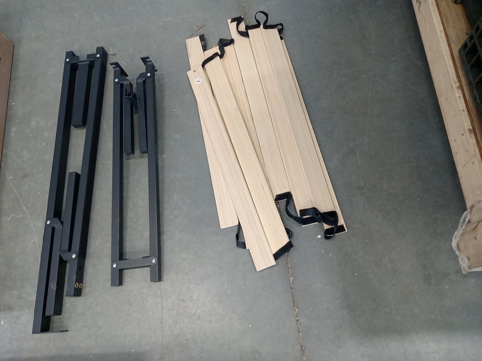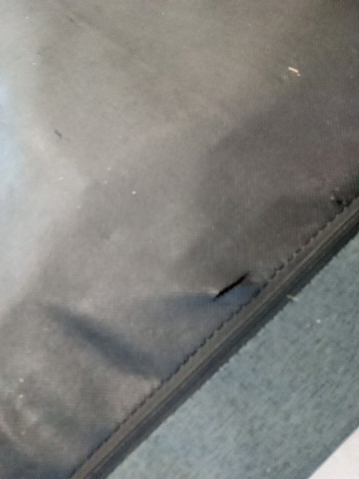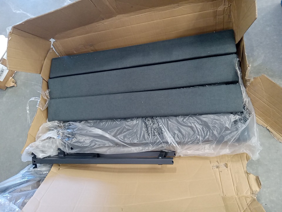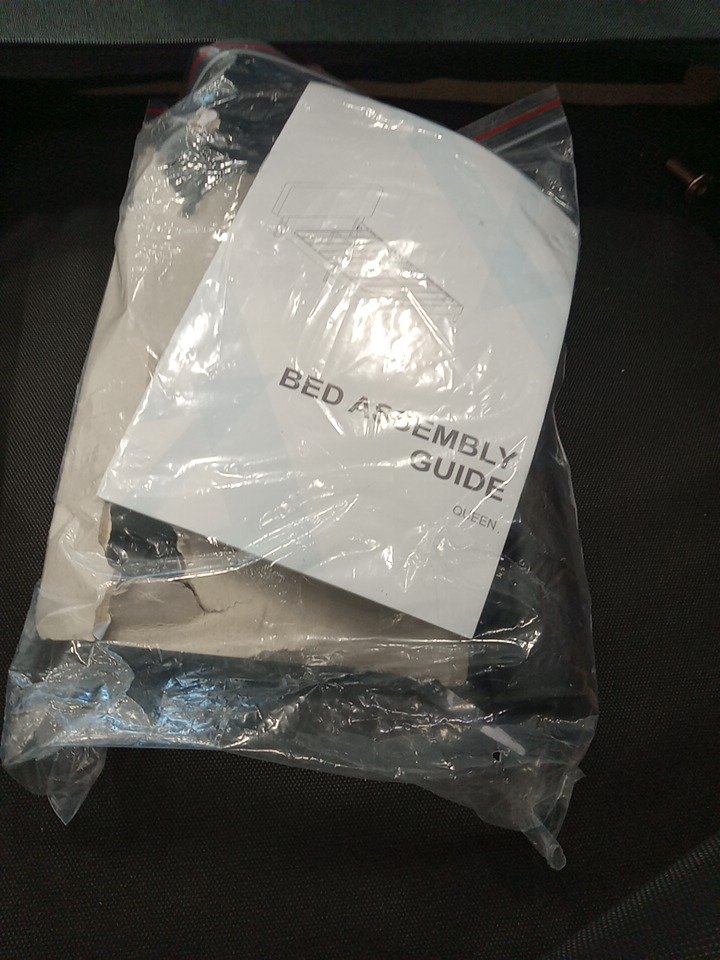 There are scuffs and installation marks present from previous assembly, there is small cut on back side of headboard. May require additional hardware for full assembly.
