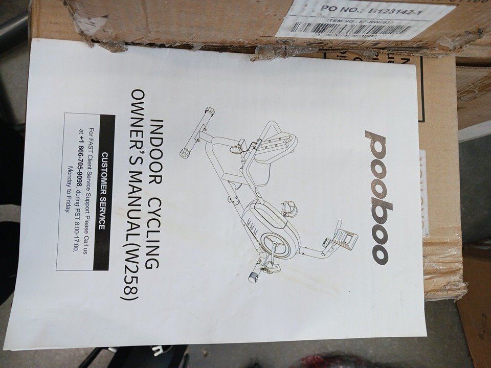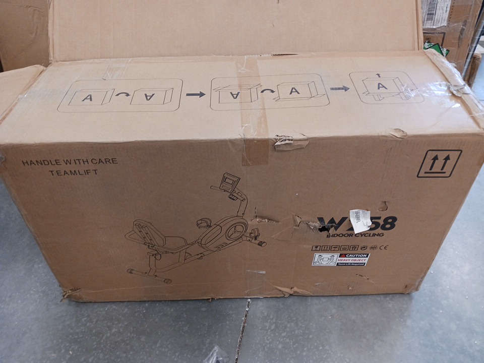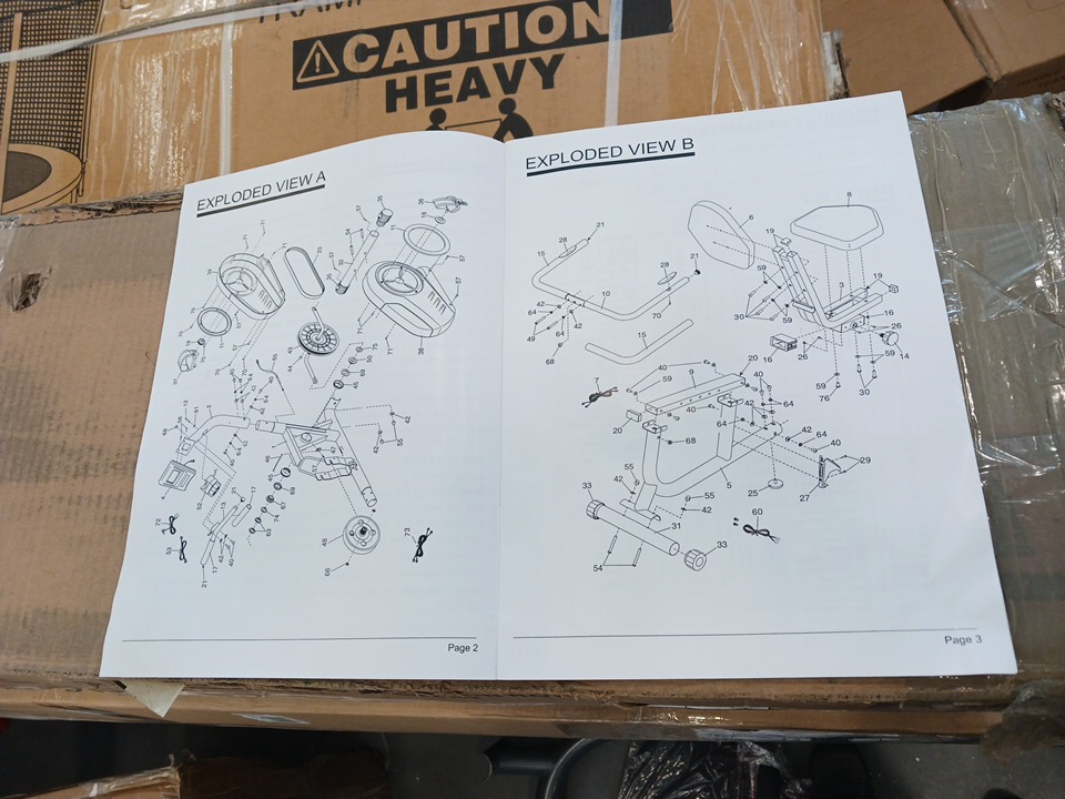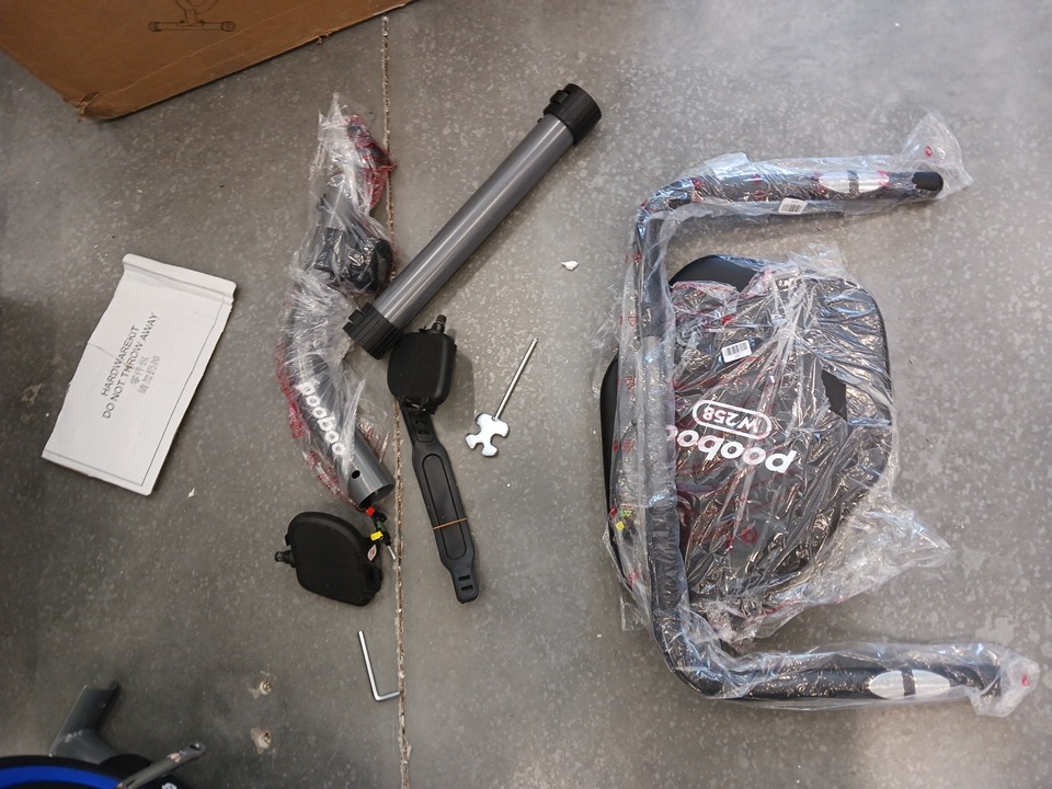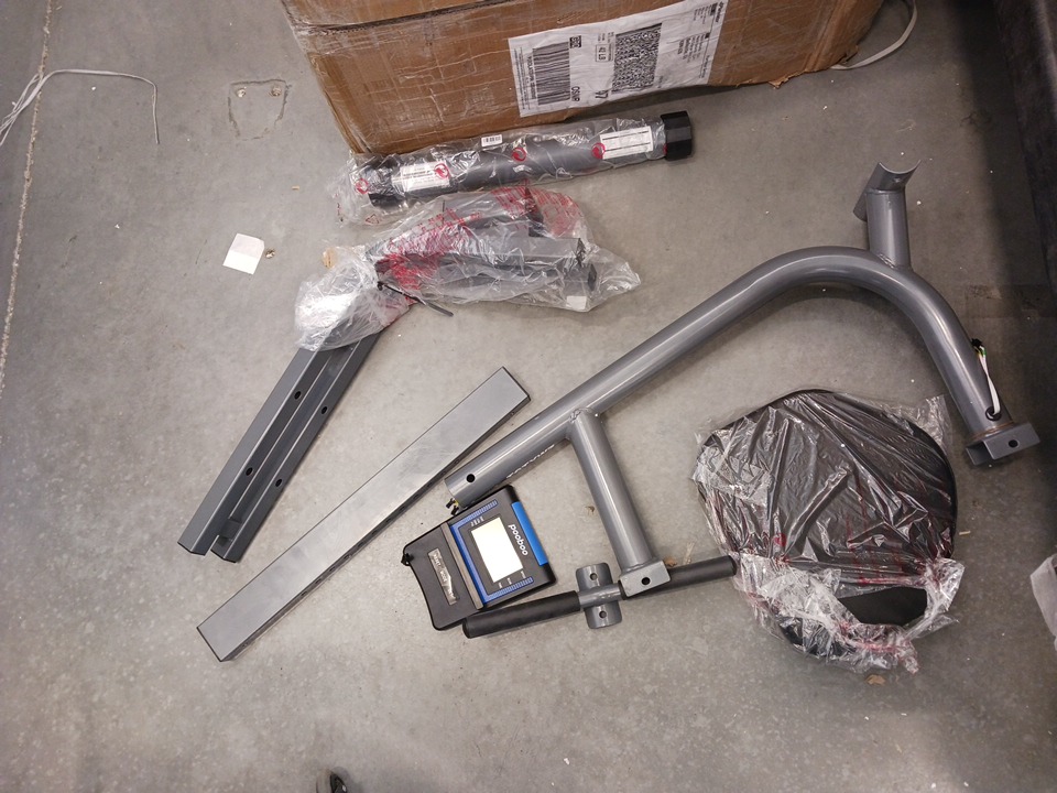 All major parts and components appear to be present and in good condition with no visible damage. However, the generic hardware kit (including bolts, washers, and nuts required for full assembly) is missing and will need to be sourced separately by the buyer. The frame, seat, pedals, and display console show minimal handling wear consistent with open-box inspection. No structural defects are observed, and all adjustable and moving parts function smoothly.