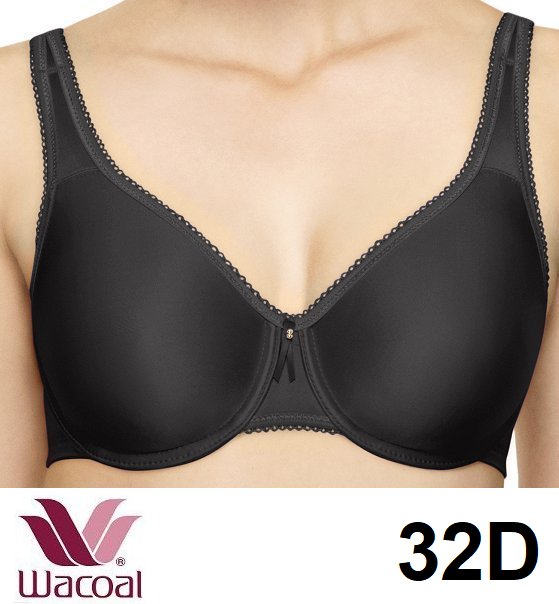 WOMENS WACOAL BASIC BEAUTY FULL-FIGURE SEAMLESS UNDERWIRE BRA - 32D - BLACK (STYLE: 853192)