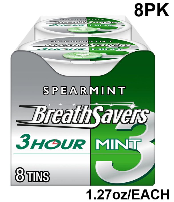 8pk breath savers spearmint sugar free breath mints tins - 1.27oz/each - white/green