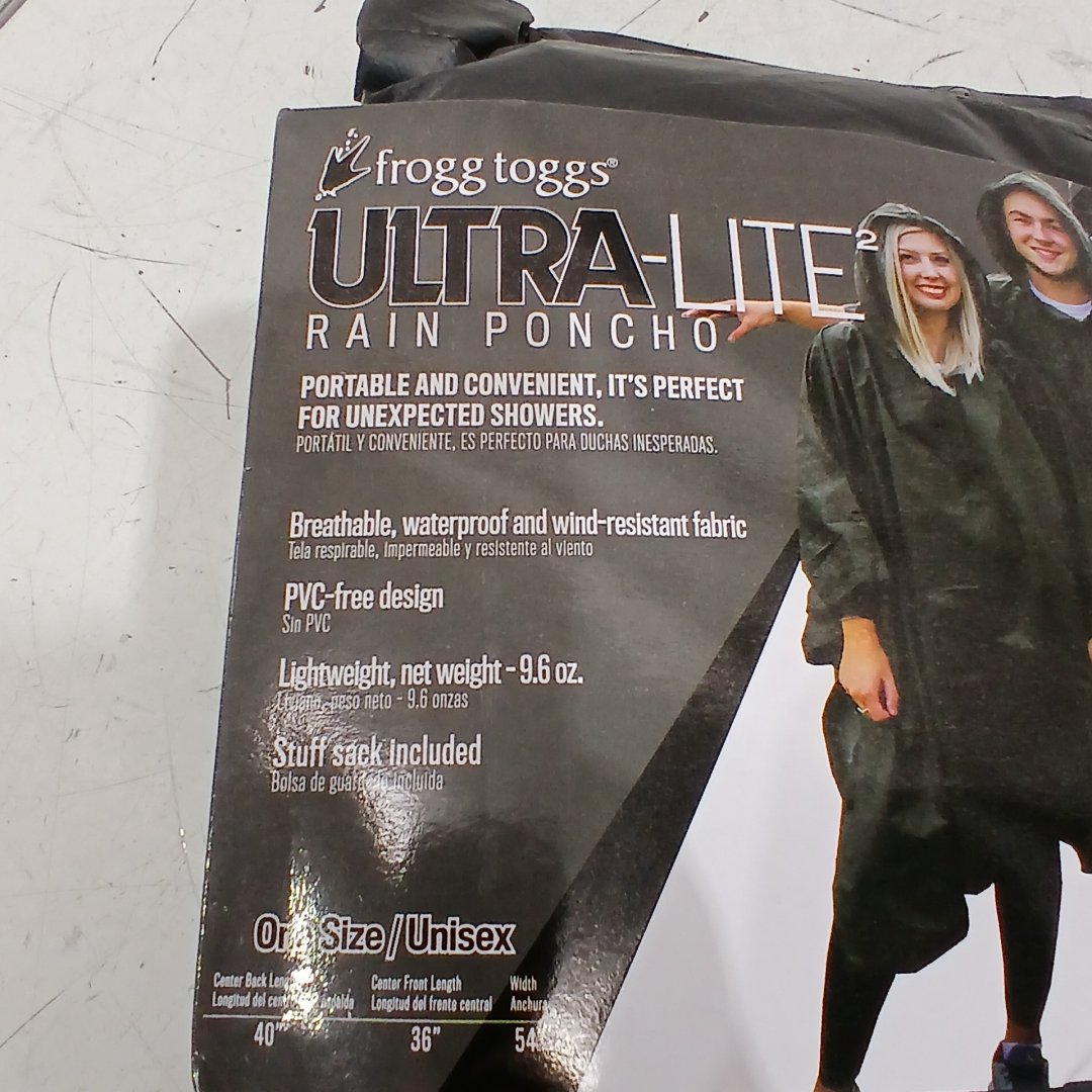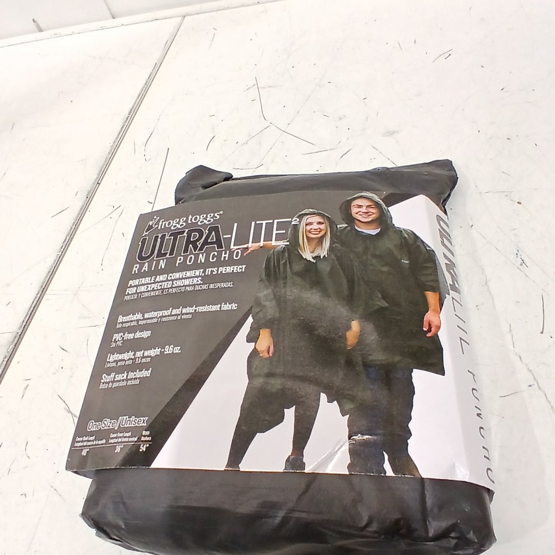 MEN'S FROGG TOGGS ULTRA LITE 2 WATERPROOF Polyethylene Shell RAIN PONCHO - ONE SIZE FITS MOST - CARBON BLACK