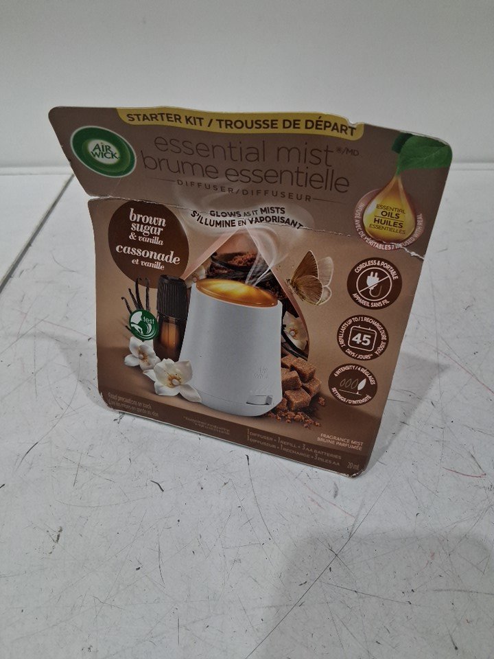 2PC AIRWICK ESSENTIAL MIST GLOWING BROWN SUGAR AND VANILLA DIFFUSER SET - 20ML - WHITE