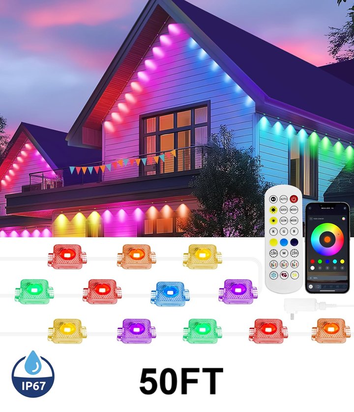 HELESIN Permanent Outdoor Lights, Smart RGBIC Lights 30 LED Outdoor Christmas Lights - 50ft (model: HCP045)
