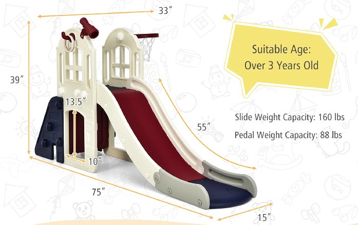 COSTWAY 6-in-1 TODDLER CLIMBER PLAYSET WITH SLIDE AND BASKETBALL HOOP (MODEL:TS10024BL)
