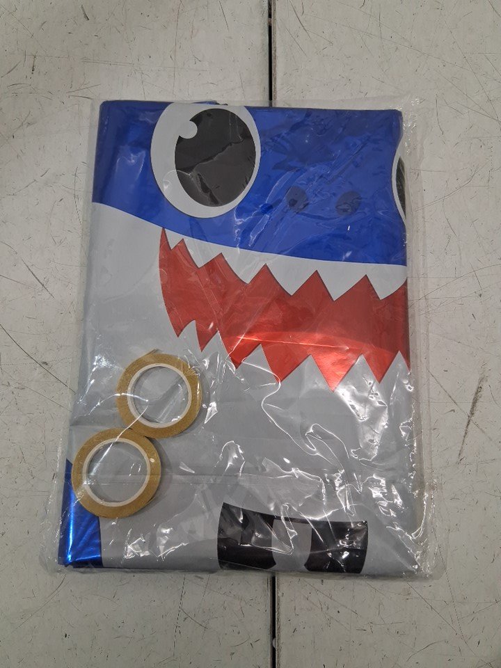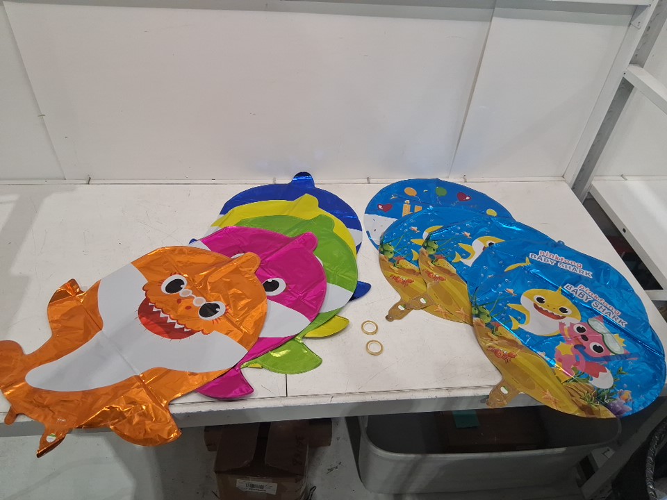 10pc grame shark birthday part balloons with straw and 2 rolls of ribbon - multi-colour