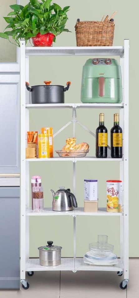 JAQ 5-tier folding storage shelving rack with wheels - 61" x 28" x 14" - WHITE - (model: gn100511)