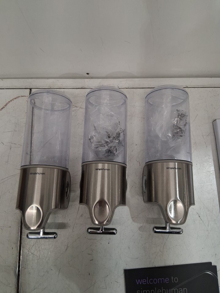 SIMPLEHUMAN TRIPLE WALL MOUNT PUMPS SET, SHAMPOO/SOAP DISPENSERS -15fl oz each - (MODEL: BT1029)
