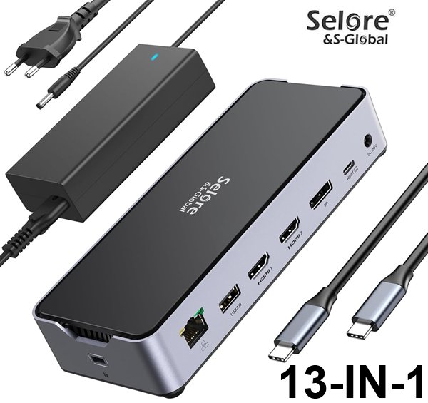 selore 13-in-1 usb-c docking station | Dual Monitor | ethernet | 10gb usb - grey - (model: sedk1407)