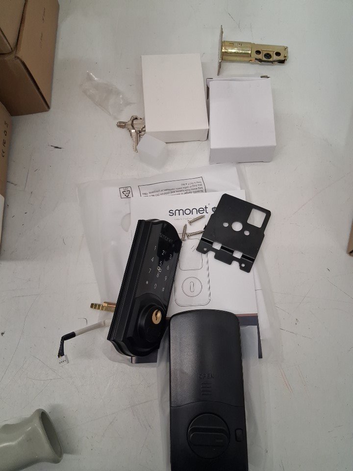 smonet wifi smart keyless entry front door deadbolt system bluetooth APP CONTROL & wireless key fobs- works with alexa and google assistant - black (model: a1-bbg-s)
