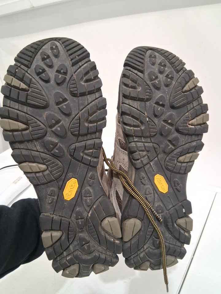 there is mud on the bottoms of the shoes but no visible wear to the rubber