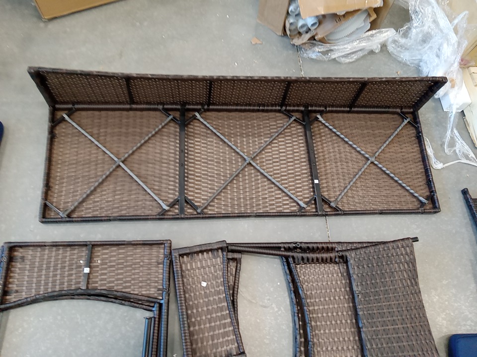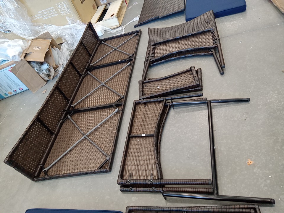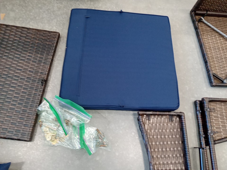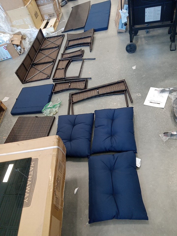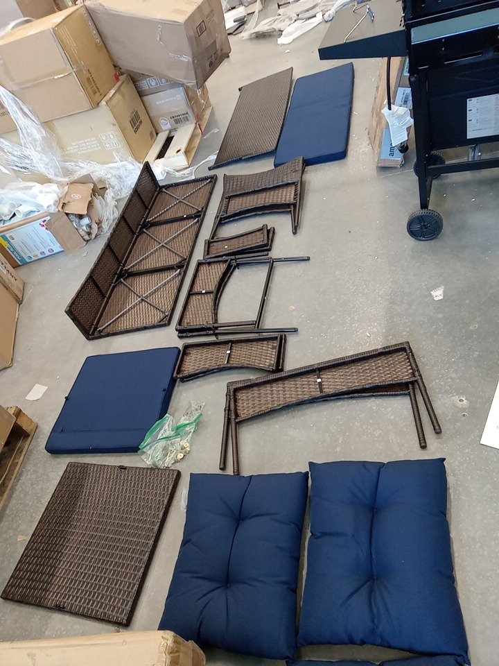 Their is some fraying/ bent spots of the rattan material and some dust on this item, this shouldn't cause issue with assembly. all vital parts for assembly are present. see photos below.