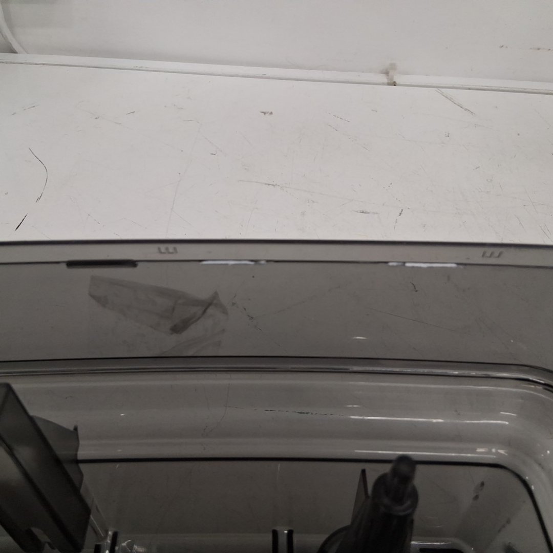 2 small pieces of plastic broke off the lid (does not affect function) Item is missing 2 wheels. (see photos) Tested for power.