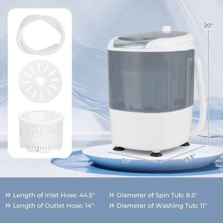 COSTWAY Portable Semi-Automatic Mini Washing Machine & Spinner Combo - 5.5LB CAPACITY - Grey - (MODEL: FP10964US-GR)