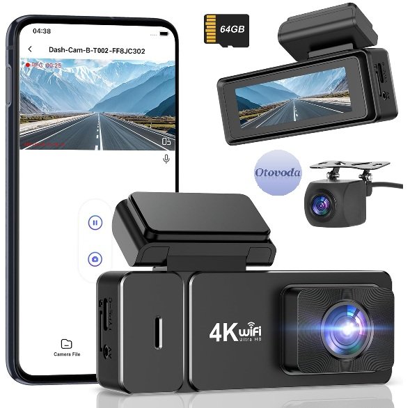 otovoda front Dash Cam with backup Camera - 4K+1080P, WiFi, 2.99’’ IPS display, 256GB microsd Card, Night Vision, 24/7 Parking Monitor, 170°Wide Angle- black (model: ‎B-T002)