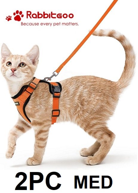 RABBITGOOCAT ADJUSTABLE CAT HARNESS AND LEASH - MEDIUM - ORANGE/BLACK (model: DXMJTZ02SOY20CW)