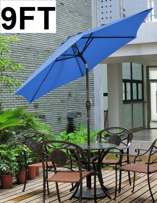 Outdoor Market Patio Table Umbrella WITH Push Button Tilt AND Crank Lift - 9 FT - BLUE