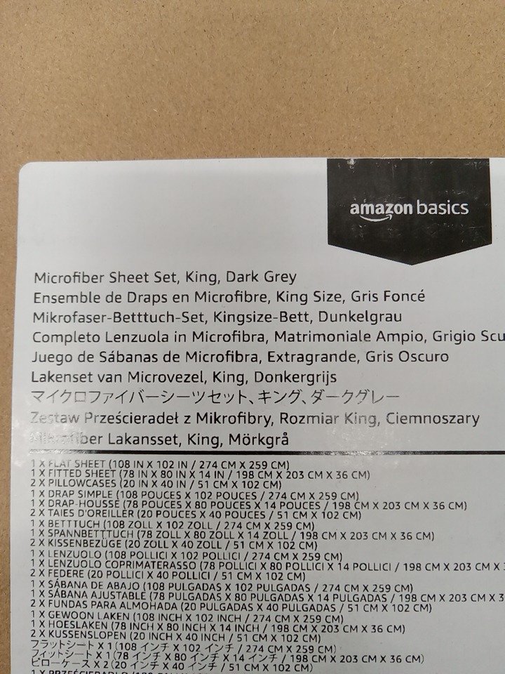 4PC AMAZONBASICS WRINKLE FREE MICROFIBER BED SHEET SET WITH Pockets - KING, DARK GREY