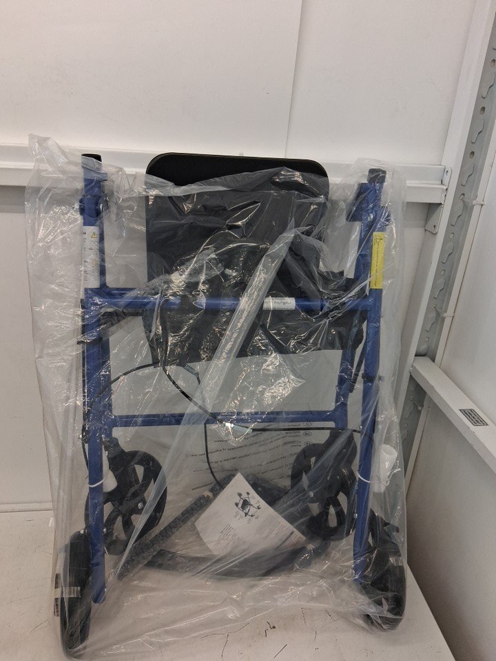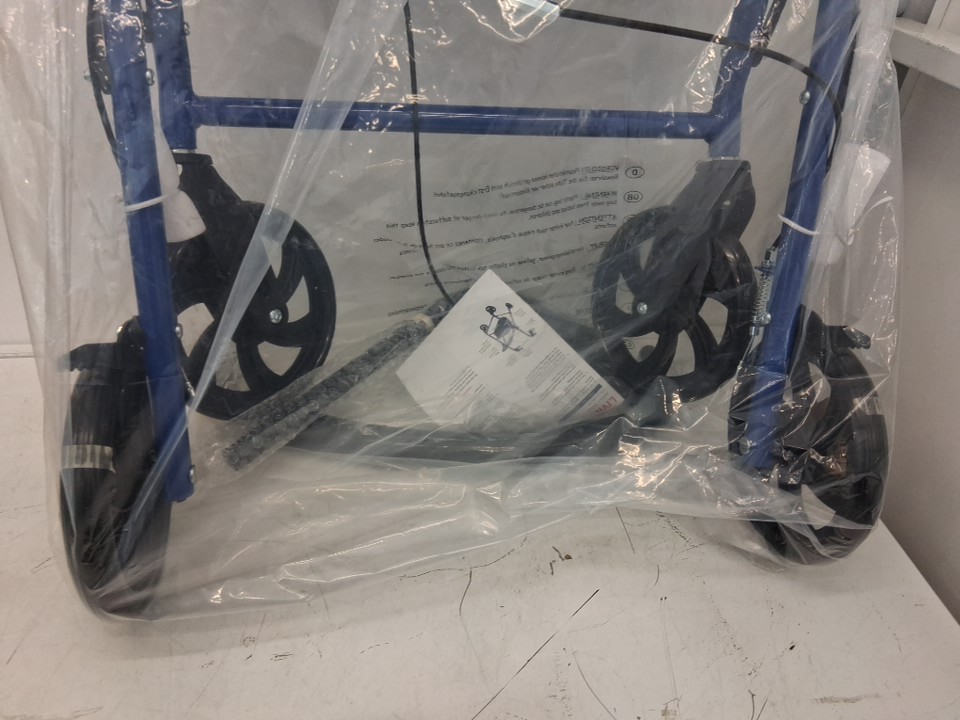 LIVING BASICS FOUR WHEEL WALKER WITH storage basket and built in seat - blue/black -(model:lb-bme-538)