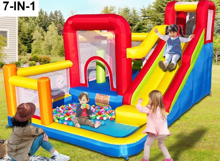 Hongcoral Bouncy Castle with Slide, Climbing Wall, Obstacles, Trampoline, Ball Pit Pool and pump for Indoor Outdoor - 10ft 2" x 8ft 3" x 7ft 2" - multicolor