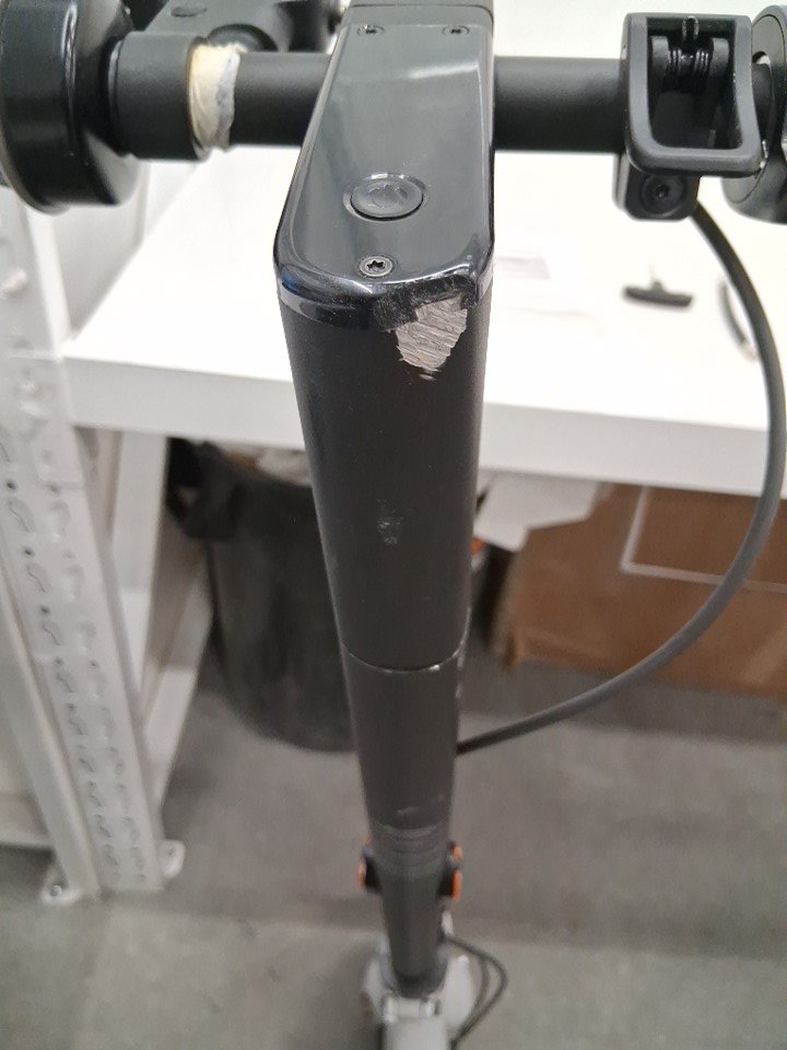 Please read full notes: - The item has a problem with the throttle. It will get stuck and instead of accelerating, it will stop the scooter. - *PLEASE BE AWARE* - When the scooter is turned on, it will immediately accelerate at full force unless the hand brake is pushed. - There are multiple scuffs and dents on the item. There is also dirt/debris from previous use. - Headlight, bell and charging tested.