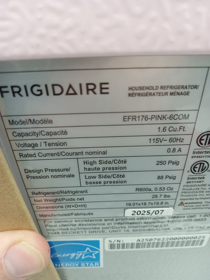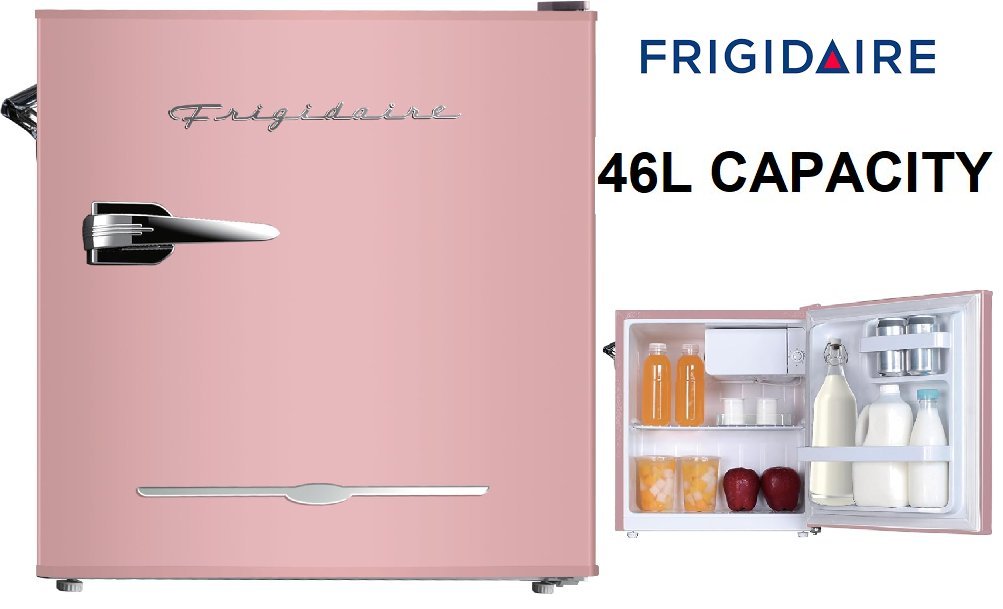 Frigidaire Retro Compact Fridge with Chiller Mini Refrigerator with Built-in Bottle Opener - 46l capacity - pink - (model: efr176-pink-6com)