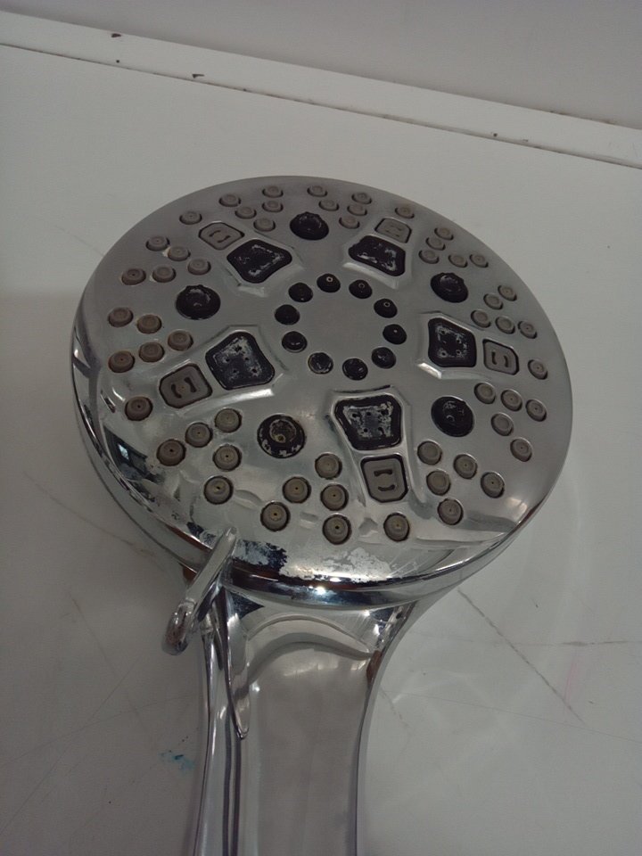 appears that there is some finger prints on the top pf the shower head and some water corrosion on the handheld attachment (see photo).
