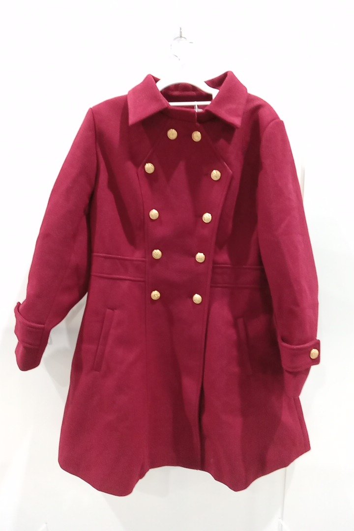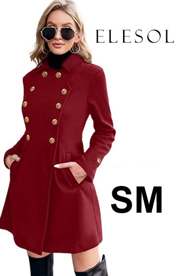 WOMENS ELESOL WOOL DOUBLE-BREASTED A-LINE MID-LENGTH SWING TRENCH COAT PEA COAT JACKET - SMALL - WINE RED