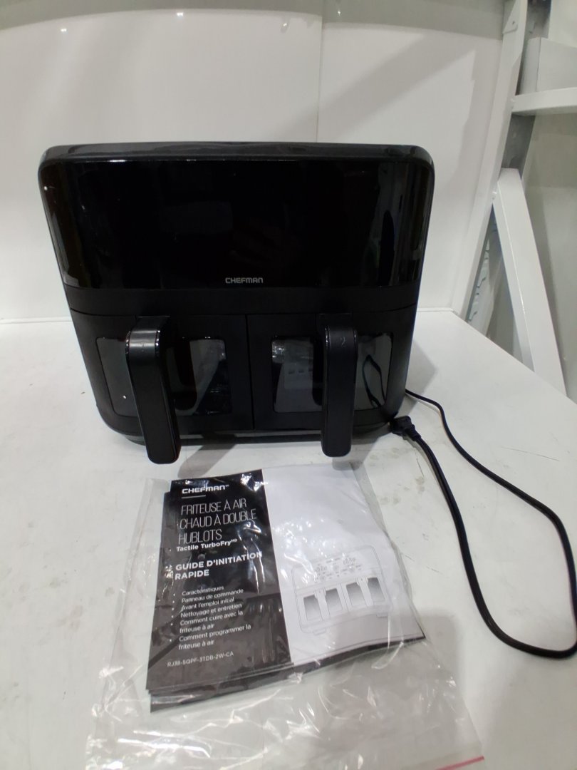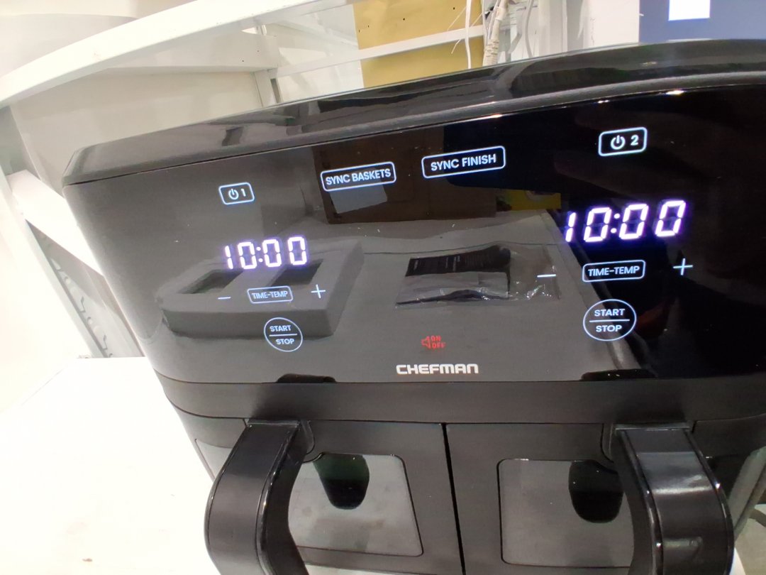 Chefman 6-Quart Dual Basket Air Fryer - Digital Touchscreen, Smart Sync Finish, Hi-Fry, Auto Shutoff, 2 Independent 3QT Nonstick Dishwasher-Safe Frying Baskets - BLACK (MODEL: rj38-sqpf-3tdb-2w-ca)