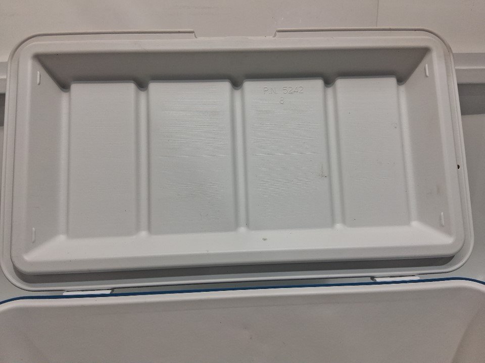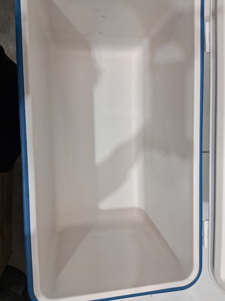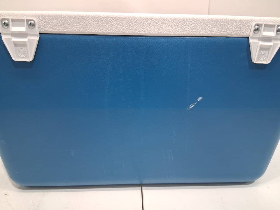 cooler has obvious signs of light use. dirt on bottom, dirt and spills along the sides and inside. no visible damage other then scratches along the bottom. see photos.