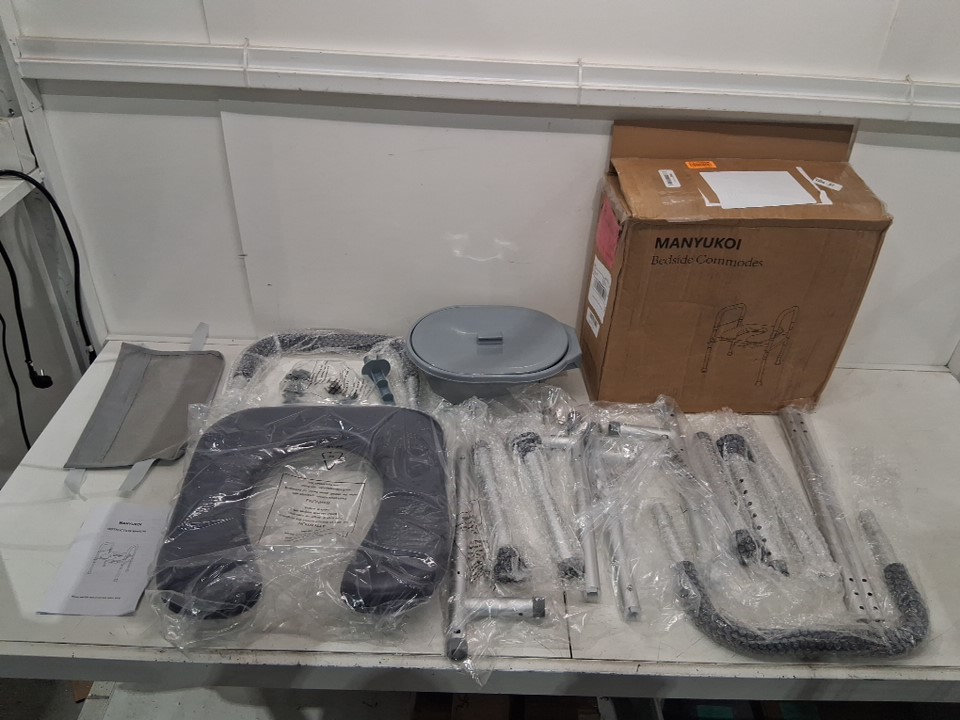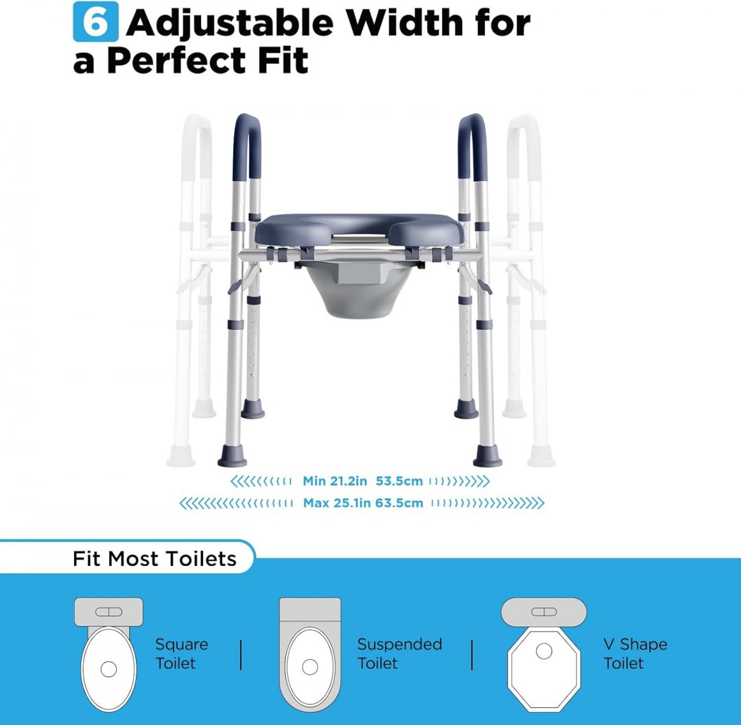 MANYUKOI Bedside Commode for Seniors with adjustable width/height - 400 LBS Capacity - 16.5" Extra Large Soft Seat - blue/grey