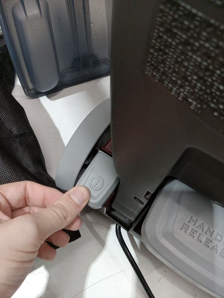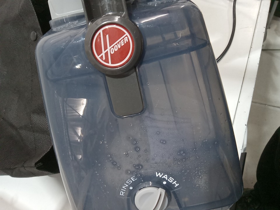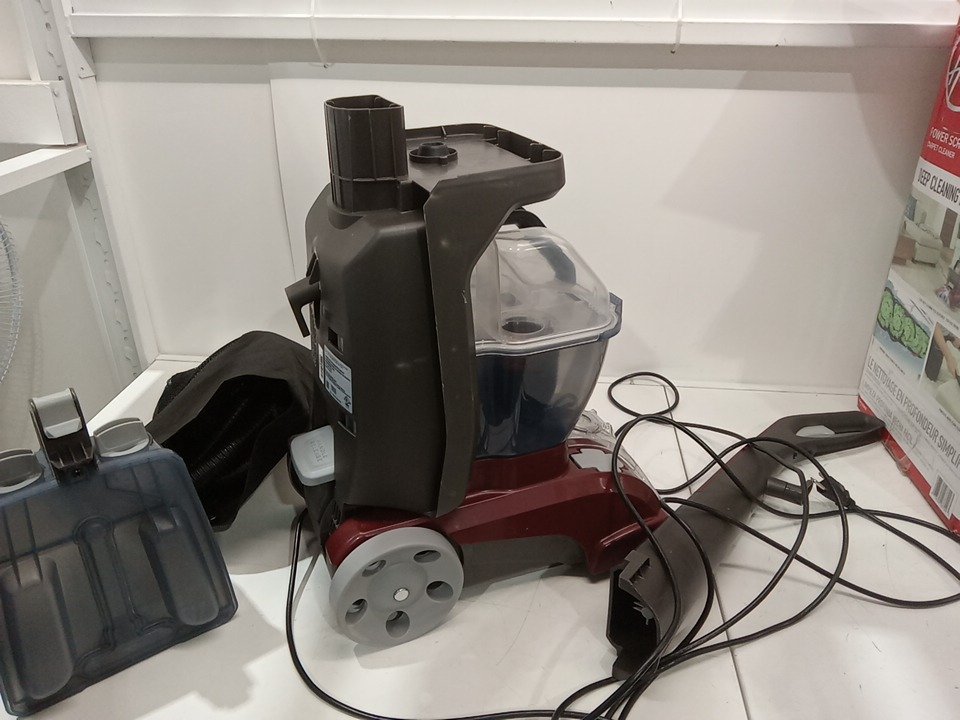The release pedal at the back is broken but still seams to function if moved properly. Some dirt in the bottom of the vacuum and condensation in the tank from previous use. Tested for power only.