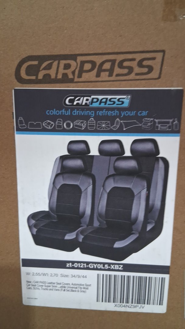 11PC Car Pass universal leather seat covers with 5mm composite sponge airbag compatible - black/grey (model: zt-0121-gy0l5-xbz)