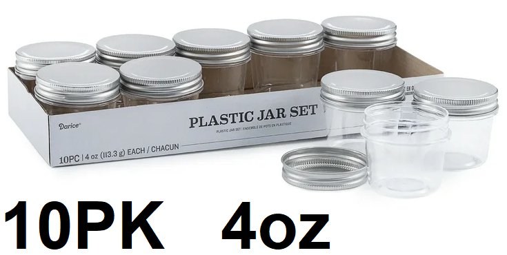 10pk restaurantware plastic jars with lids - 4oz - clear